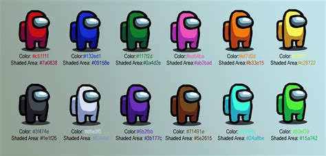 Among Us Color Code - Template is the most simple, with hex codes ff0000 (main), 0000ff (shaded), 00ff00 (insides and glass), and 008b00 (glass shaded). These are the colors in among us which change the appearance of characters. Welcome to the among us wiki! Hexs of the astronaut glass the character wear: We are happy that you are here.